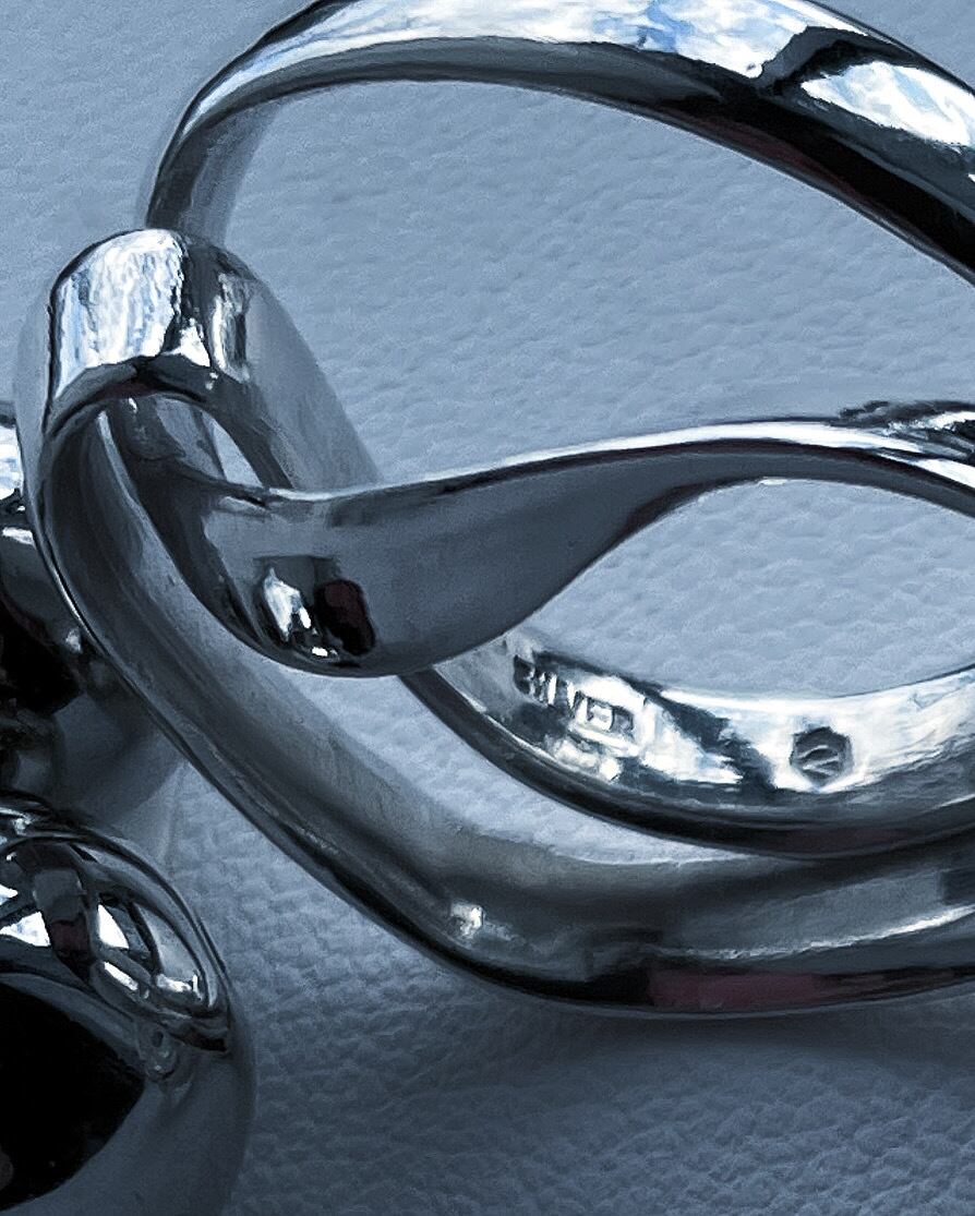 滑らかに結ばれる様子を表現しました。たっぷりと地金を使った贅沢なエレガントさとエッジの効いたデザインで幅広い層におすすめのリングです。